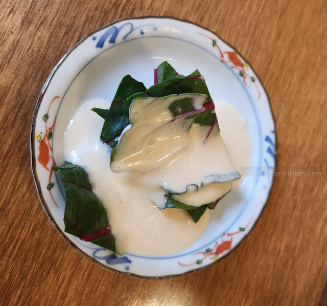 정말 시판했으면 좋겠을 내 취향저격의 소스가 버무러진 샐러드가 제공된다.