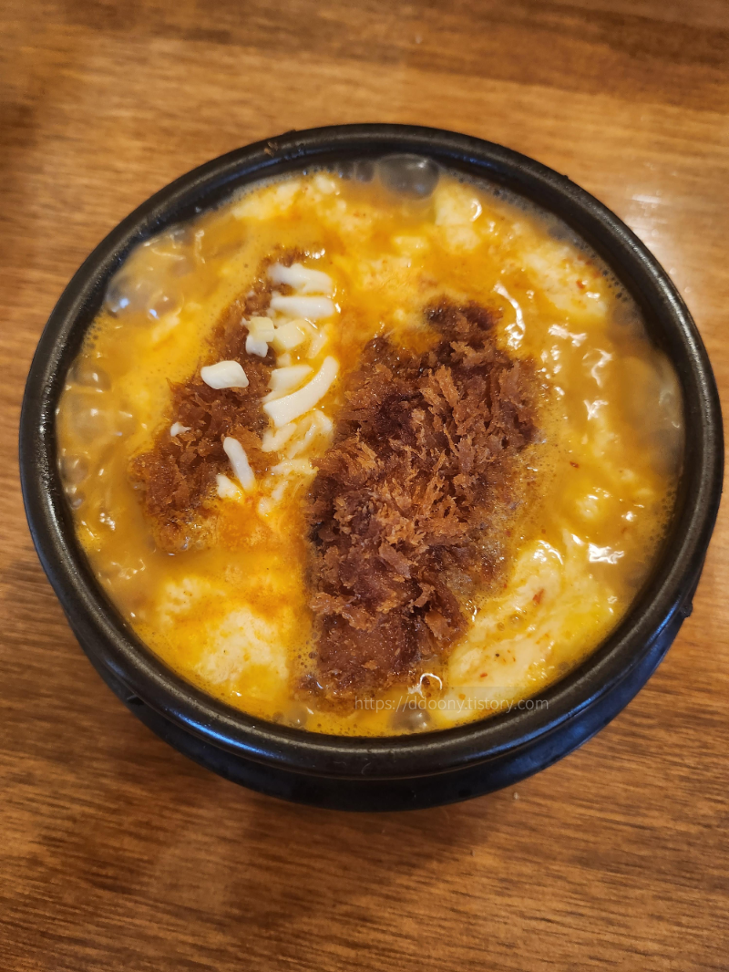 뚝배기에 나오는 것이 정성 돈까스, 우리가 흔히 생각하는 돈까스는 사모님 돈까스이다.