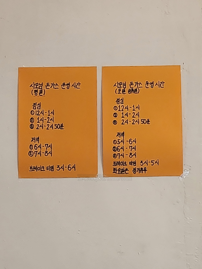 나는 정성돈까스, 남편은 기본메뉴인 사모님 돈까스를 주문했다.