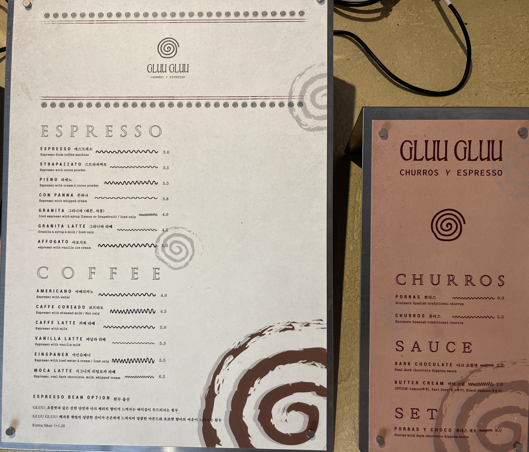 카페 글루글루에서는 츄러스와 뽀러스를 판매하는데요.
